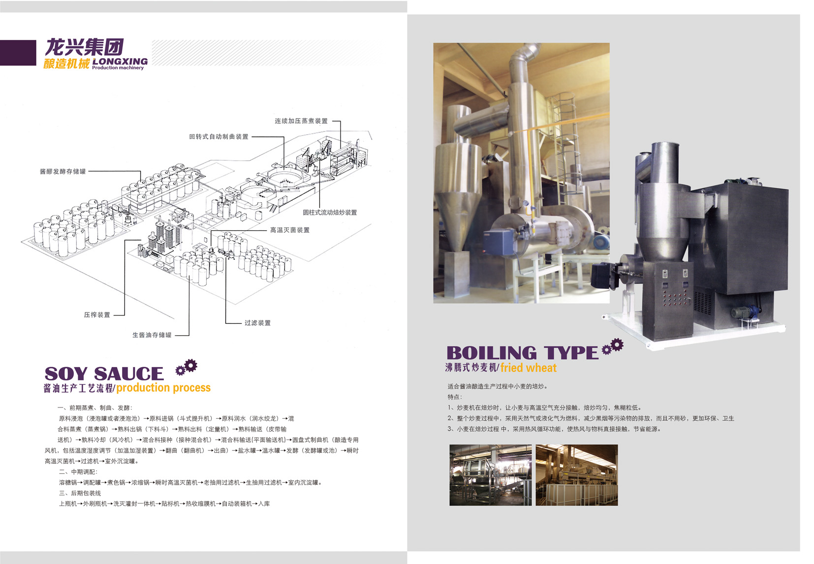 山東龍興集團萊州市龍興食品釀造設備有限公司為中國白酒協(xié)會會員單位、中國調味品協(xié)會會員單位,主要開發(fā)設計制造蒸煮設備、攤涼加曲設備、圓盤制曲設備、發(fā)酵設備、烘干設備等釀造生產(chǎn)線;調味品釀造設備生產(chǎn)線、醬油生產(chǎn)設備、食醋釀造設備、豆瓣醬生產(chǎn)設備、生物工程發(fā)酵設備生產(chǎn)線。