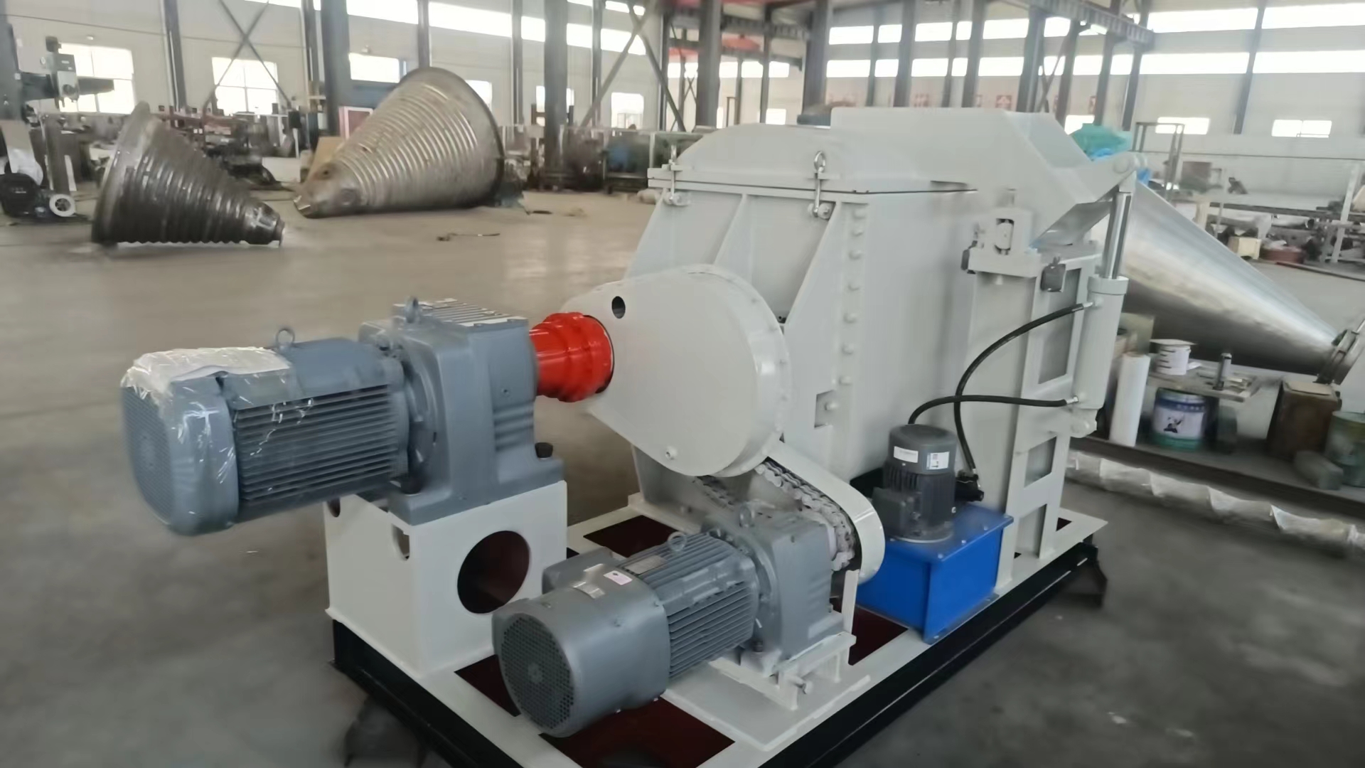 螺桿擠出型捏合機,是在一對互相配合和旋轉(zhuǎn)的葉片的下面配置一條螺桿擠壓的設(shè)置,在捏合機混合或捏合破碎完畢后,可通過這條螺桿擠壓物料出來,操作相當(dāng)方便,對于液壓與手搖翻缸來說,大大地提高了生產(chǎn)效率,而且還能更大程度減少出料不方便、不干凈等缺點,但是螺桿擠壓型捏合機一般容積至少要達(dá)到500L以上,而且價格來說也貴些,適用于大批量生產(chǎn)